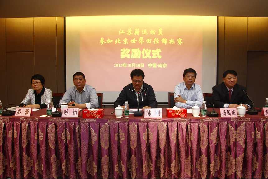 “江蘇鐵人田徑隊運動員參加北京田徑世錦賽獎勵儀式” 在省體育局訓練中心隆重舉行